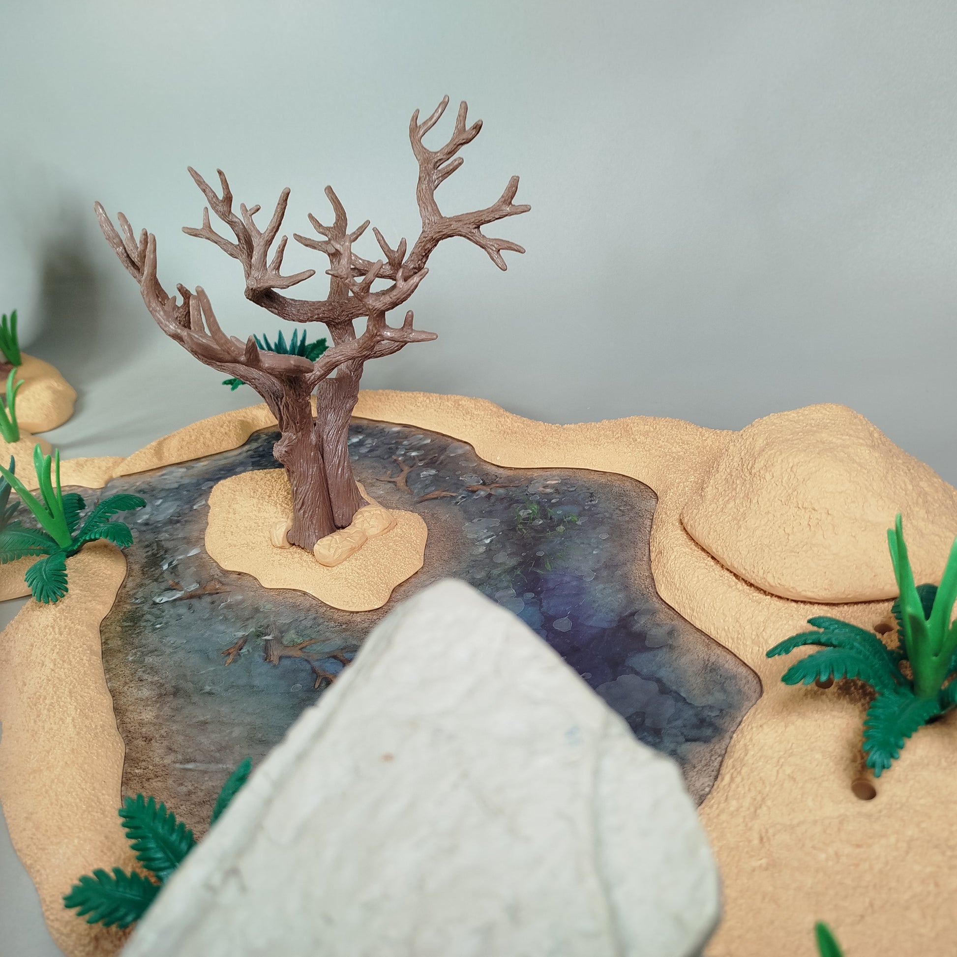 Hol dir die Große Wasserstelle von Schleich Wild Life und erschaffe spannende Safari- und Naturwelten im Kinderzimmer. Das Landschafts-Spielset zeigt einen Fluss- bzw. Oasenbereich mit modularem Aufbau, Felsen, Wasserfall und verschiedenen Pflanzen für freies, fantasievolles Spielen mit Tierfiguren. Ideal zum Kombinieren mit bestehenden Spielwelten und für kreative Rollenspiele. Gib diesem Spielzeug ein neues Zuhause und unterstütze nachhaltiges Spielen. Enthalten sind Landschaftselemente mit Felsen, Wasserfall, Baum und Pflanzen, Figuren sind nicht dabei. Hinweis: Enthält Kleinteile, nicht geeignet für Kinder unter 3 Jahren.
