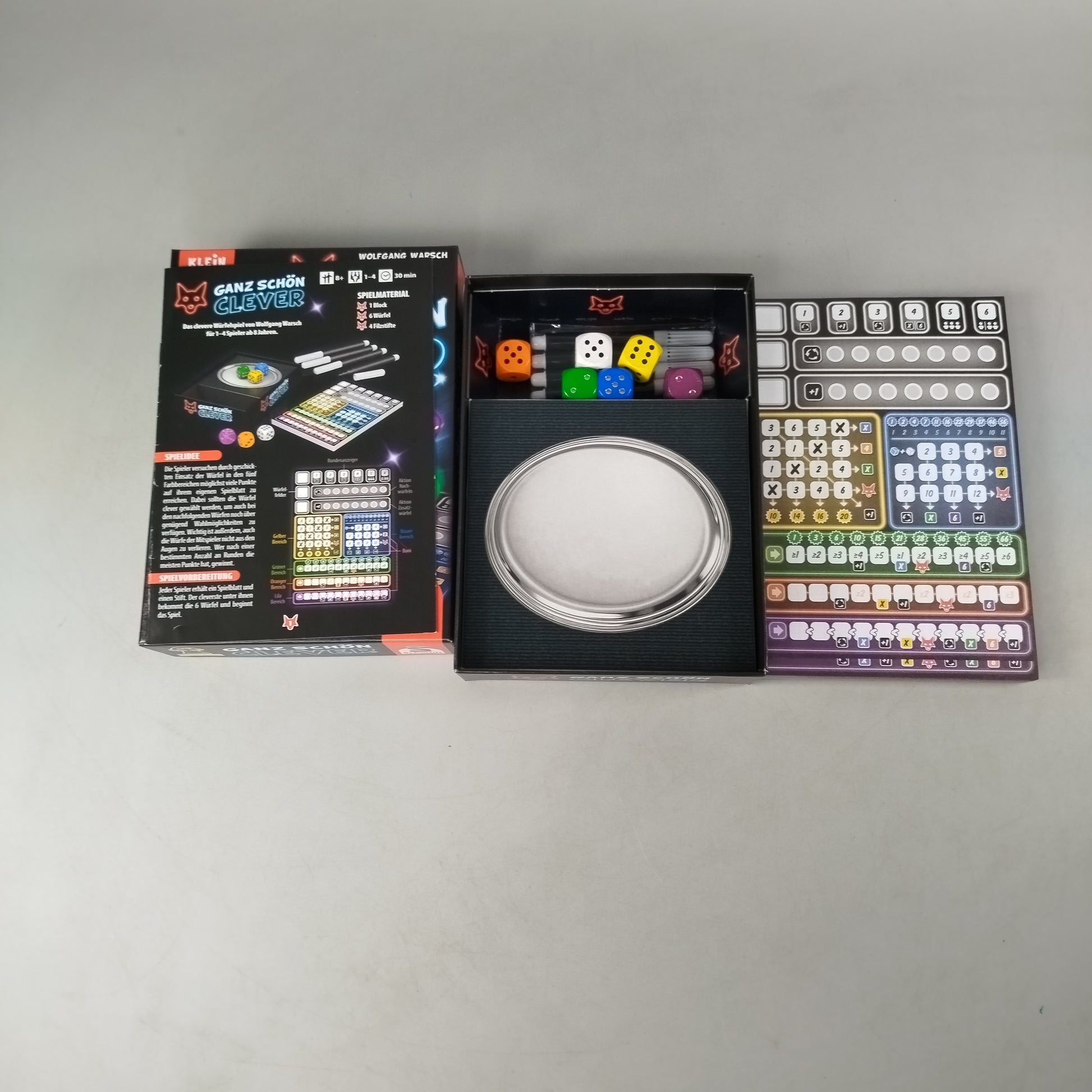 Hol dir das Würfelspiel Ganz schön clever von Schmidt Spiele und tauche in spannende Spielrunden ein. In diesem strategischen Spiel von Wolfgang Warsch würfelst du clever, triffst taktische Entscheidungen und sammelst Punkte über verschiedene Wertungsbereiche. Das Spiel ist für 1–4 Spieler gedacht, dauert rund 30 Minuten und sorgt für abwechslungsreichen Spielspaß. Gib diesem Spielzeug ein neues Zuhause und unterstütze nachhaltiges Spielen. Sicherheitshinweis gemäß GPSR: Enthält Kleinteile, nicht geeignet für Kinder unter 3 Jahren.