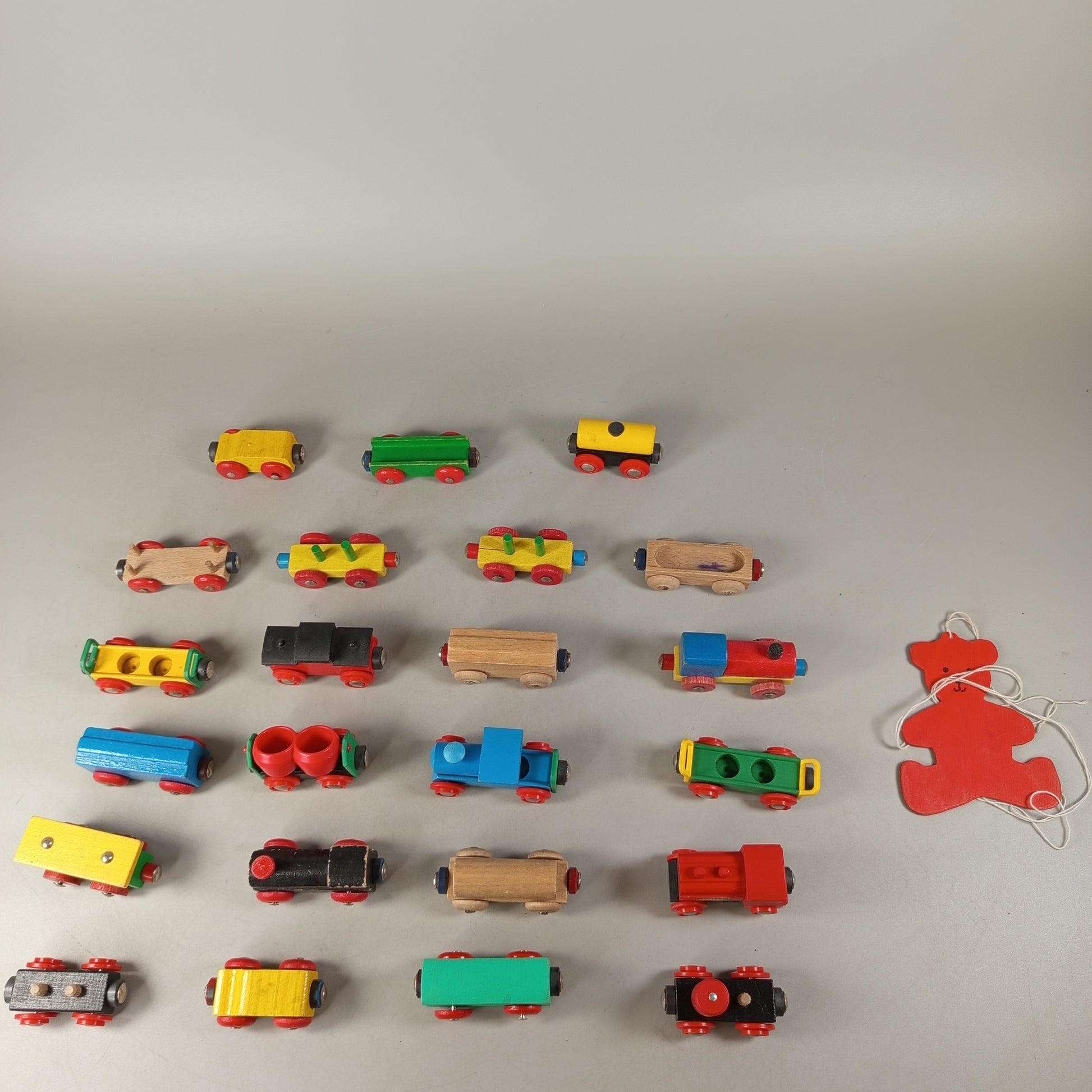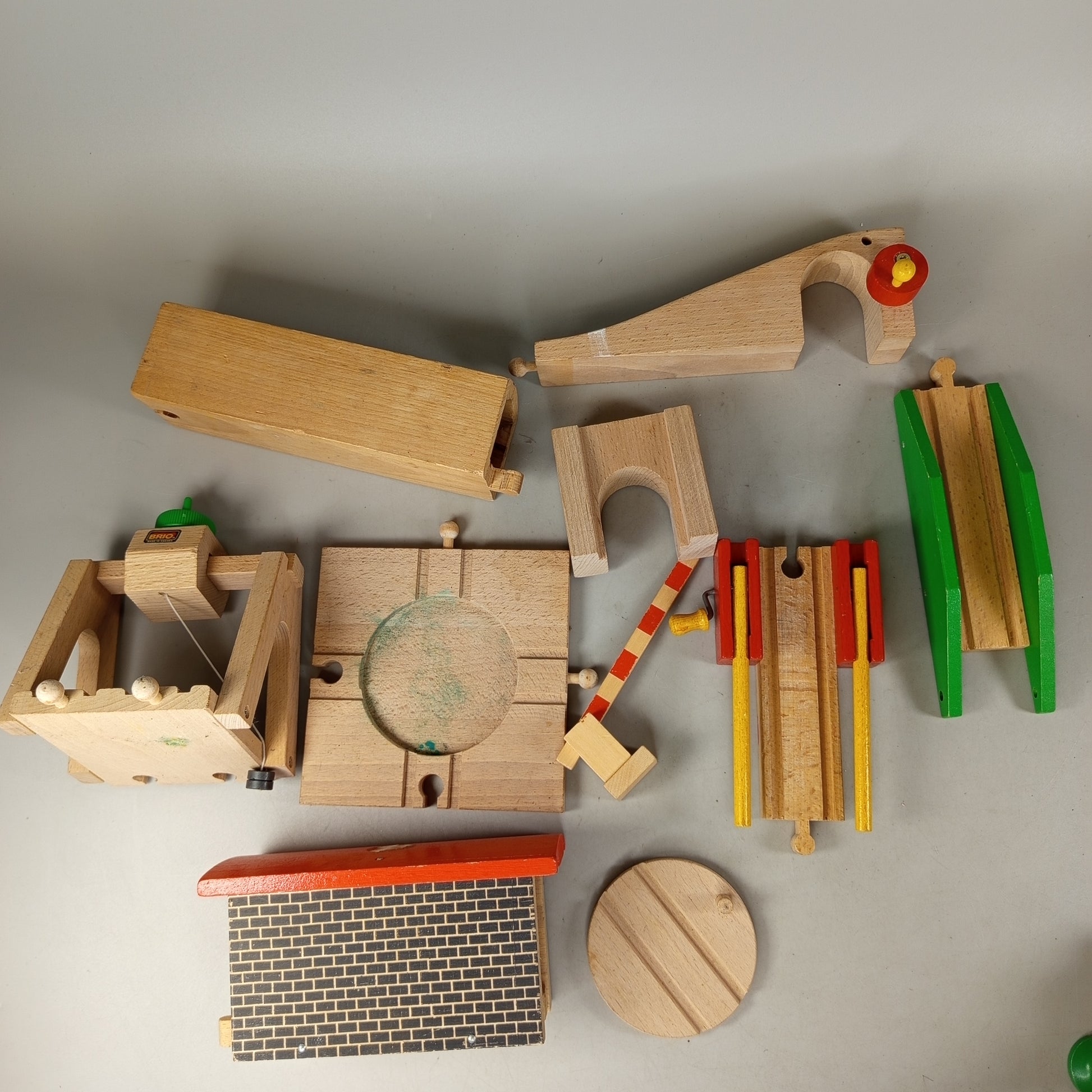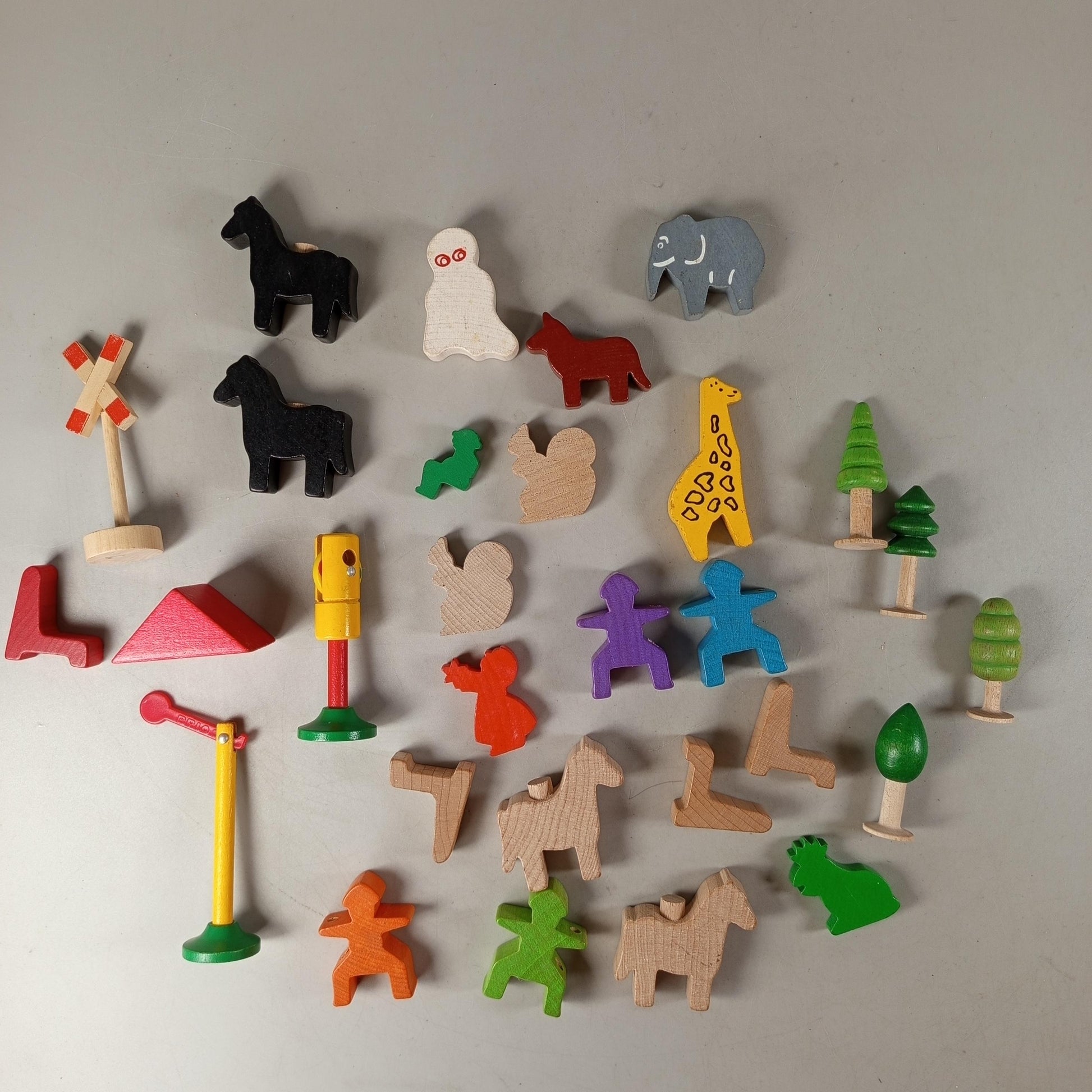 Hol dir das Holzeisenbahn-Set und erschaffe deine eigene kleine Welt aus Holz! Dieses umfangreiche Set enthält zahlreiche Schienen, Züge, Tiere, Bäume und Brückenteile der Marke Brio. Ebenfalls sind Zubehörteile anderer Marken wie IKEA darunter. Die Teile zeigen geringe Gebrauchsspuren, die Verpackung und Anleitung fehlen. Das Spielzeug befindet sich in einem guten gebrauchten Zustand. Die Vollständigkeit konnte nicht überprüft werden. Sicherheitshinweis: Nicht für Kinder unter 3 Jahren geeignet, da Kleinteile verschluckt werden können. Gib dieser langlebigen Holzeisenbahn ein neues Zuhause und fördere fantasievolles Spielen!