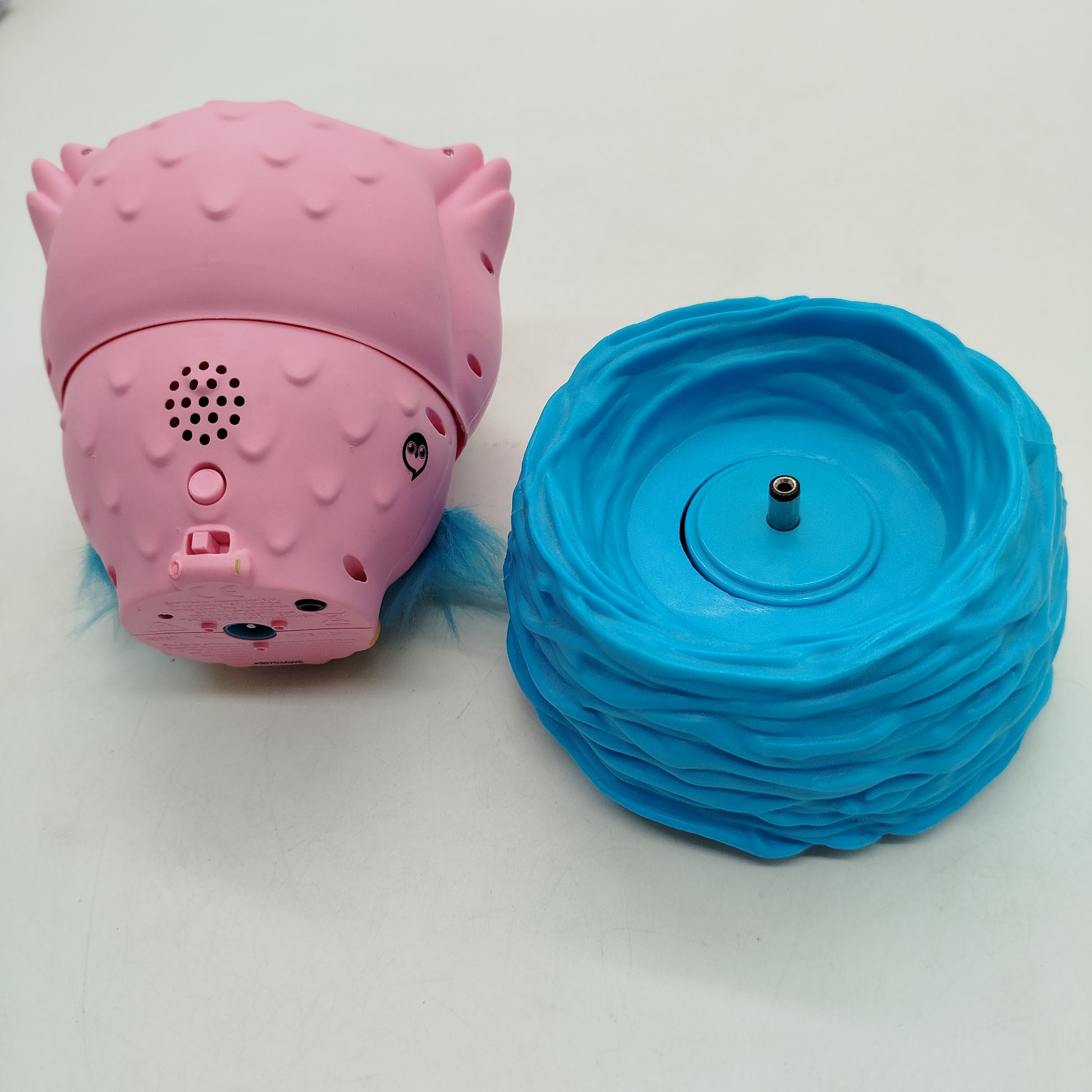 Hol dir das elektronische Einzelspielzeug in Form einer pinken Babyeule mit blauen Federbüscheln, das über einen integrierten Lautsprecher sowie einen Ein- und Ausschalter auf der Rückseite verfügt und zusammen mit einer blauen, nestförmigen Ladestation mit fest integriertem USB-Ladekabel geliefert wird; enthalten sind genau eine Eulenfigur und eine Ladestation, der Zustand ist äußerlich nicht näher beurteilbar, sichtbare Beschädigungen sind nicht erkennbar, zur ursprünglichen Vollständigkeit können keine weiteren Aussagen gemacht werden, eine Verpackung ist nicht vorhanden, das Spielzeug trägt eine CE-Kennzeichnung und eignet sich als Second-Hand-Artikel ideal für eine nachhaltige Zweitnutzung, wobei aufgrund der elektronischen Bauweise und möglicher Kleinteile eine Nutzung nur unter altersgerechter Aufsicht empfohlen wird.