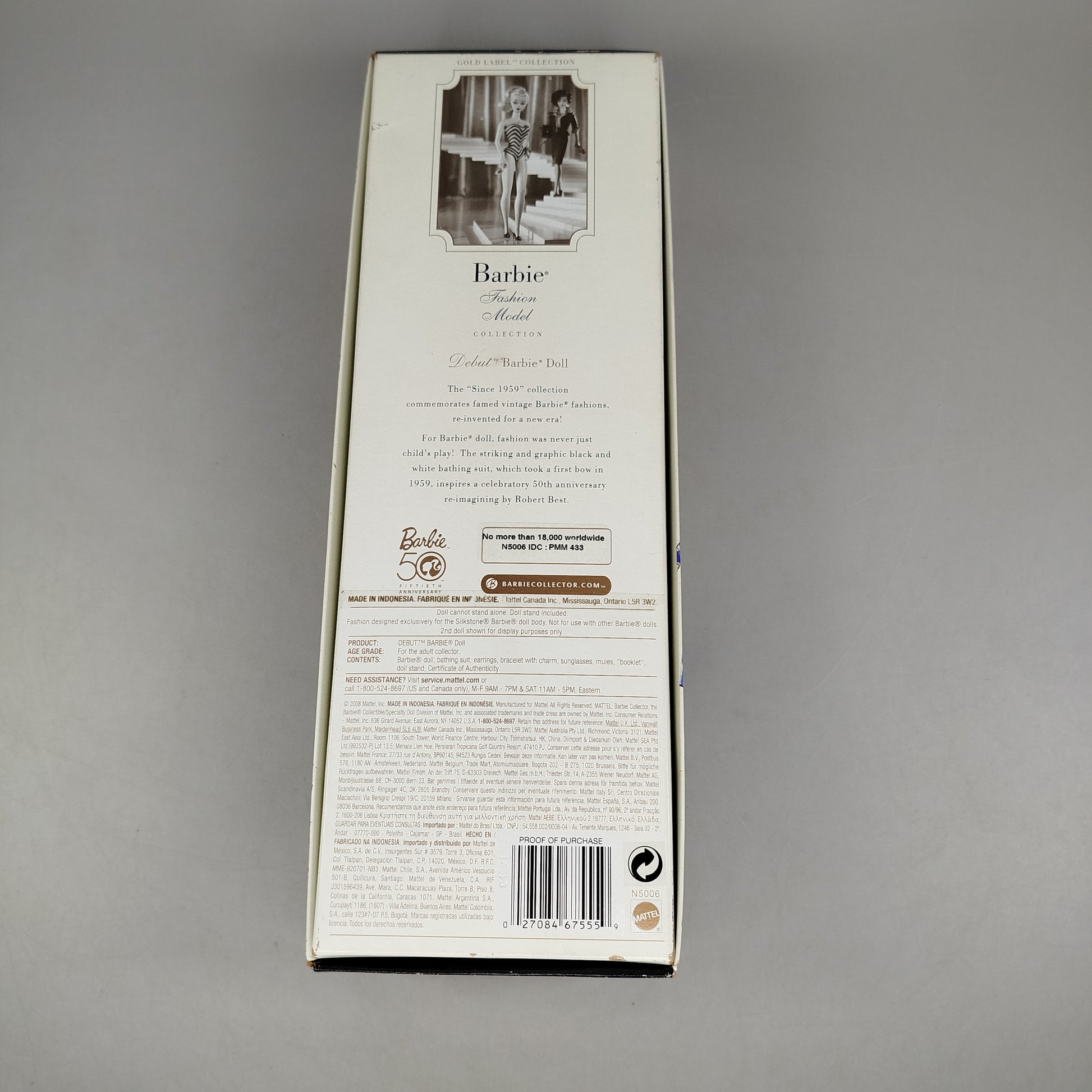 Hol dir die elegante Barbie aus der Fashion Model Collection – Debut Edition von Mattel. Diese exklusive Sammlerpupe aus der Gold Label Serie besitzt einen echten Silkstone-Körper und feiert 50 Jahre Barbie-Modegeschichte seit 1959. Sie kommt in Originalverpackung und befindet sich in neuwertigem Zustand. Eine stilvolle Ergänzung für jede Barbie-Sammlung und ein Stück Spielzeuggeschichte. Hinweis: Sammlerartikel, nicht als Kinderspielzeug geeignet.