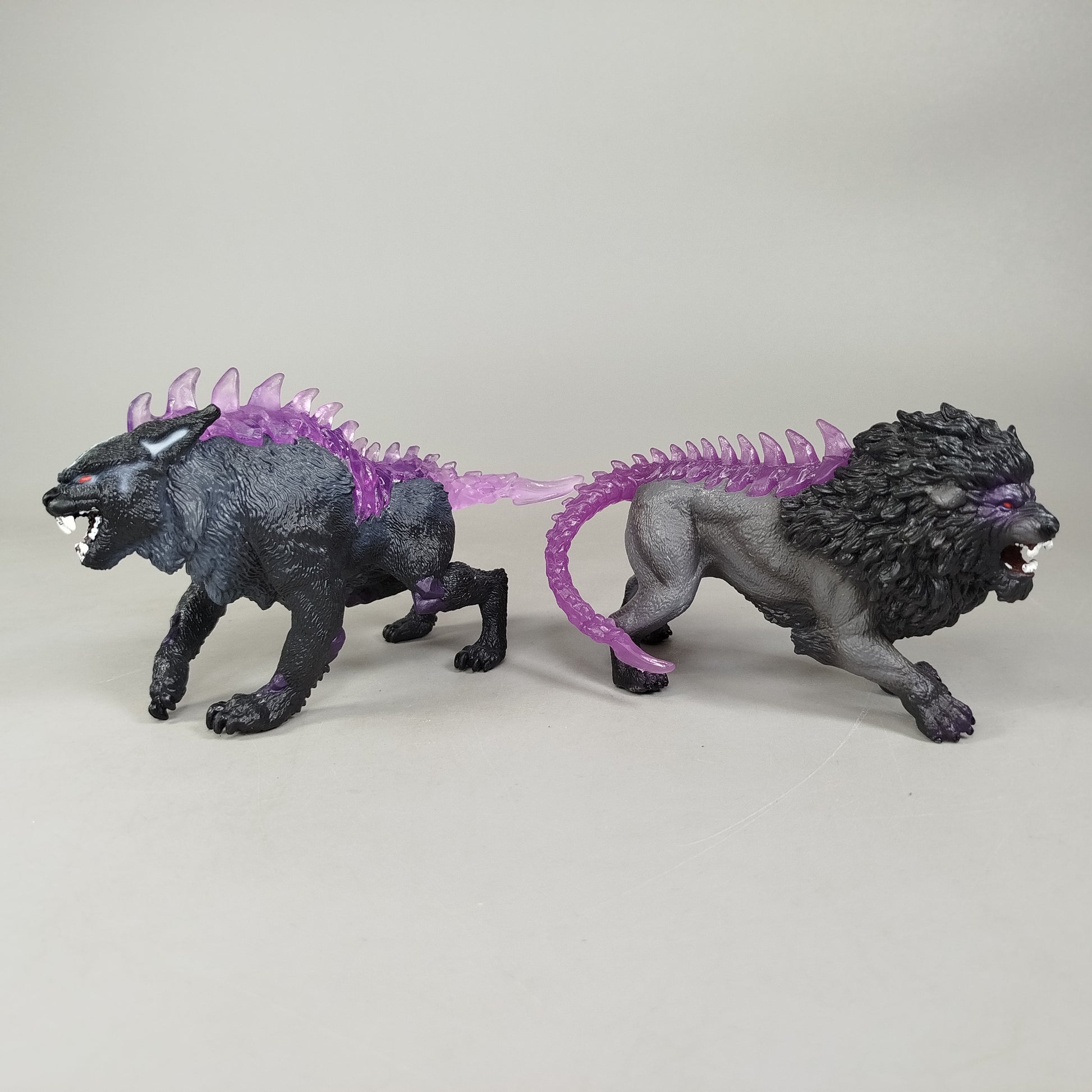 Hol dir die beeindruckenden Schleich Fantasy Figuren 42555 und Teil von 70827 für dein Regal oder zum Spielen. Diese detailreichen Figuren zeigen fantasievolle Tierwesen mit transparent violetten Rückenkämmen und Schwänzen. Sie bestehen aus hochwertigem Kunststoff und sind sorgfältig handbemalt. Ideal für Sammler und kreative Kinder. Das Set ist vollständig und befindet sich in wie neuem Zustand. Gib diesen faszinierenden Figuren ein liebevolles neues Zuhause!