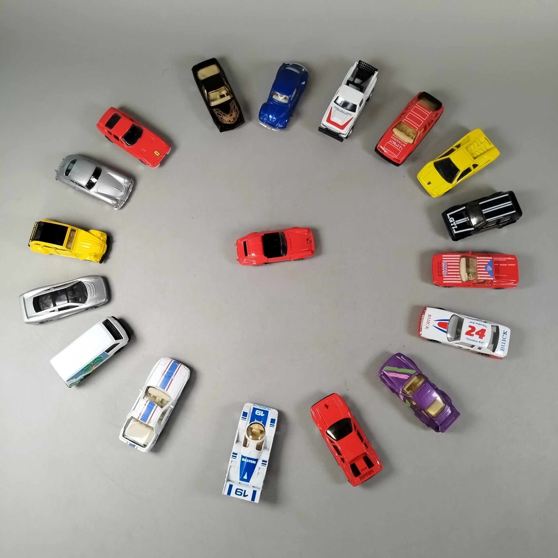 Hol dir diese abwechslungsreiche Sammlung aus Diecast-Spielzeugautos und bring Rennspaß ins Kinderzimmer! Enthalten sind verschiedene Fahrzeugtypen wie Sportwagen, Rennwagen, ein Pickup und ein Cabrio mit bekannten Automotiven wie Porsche, Ferrari, Mazda und Buick sowie auffälligen Startnummern, Logos und Dekoren. Die Autos eignen sich für freies Spielen, Sammeln und fantasievolle Rollenspiele. Gib diesem Spielzeug ein neues Zuhause und schenke ihm ein zweites Leben. Sicherheitshinweis gemäß GPSR: Enthält Kleinteile, nicht geeignet für Kinder unter 3 Jahren.