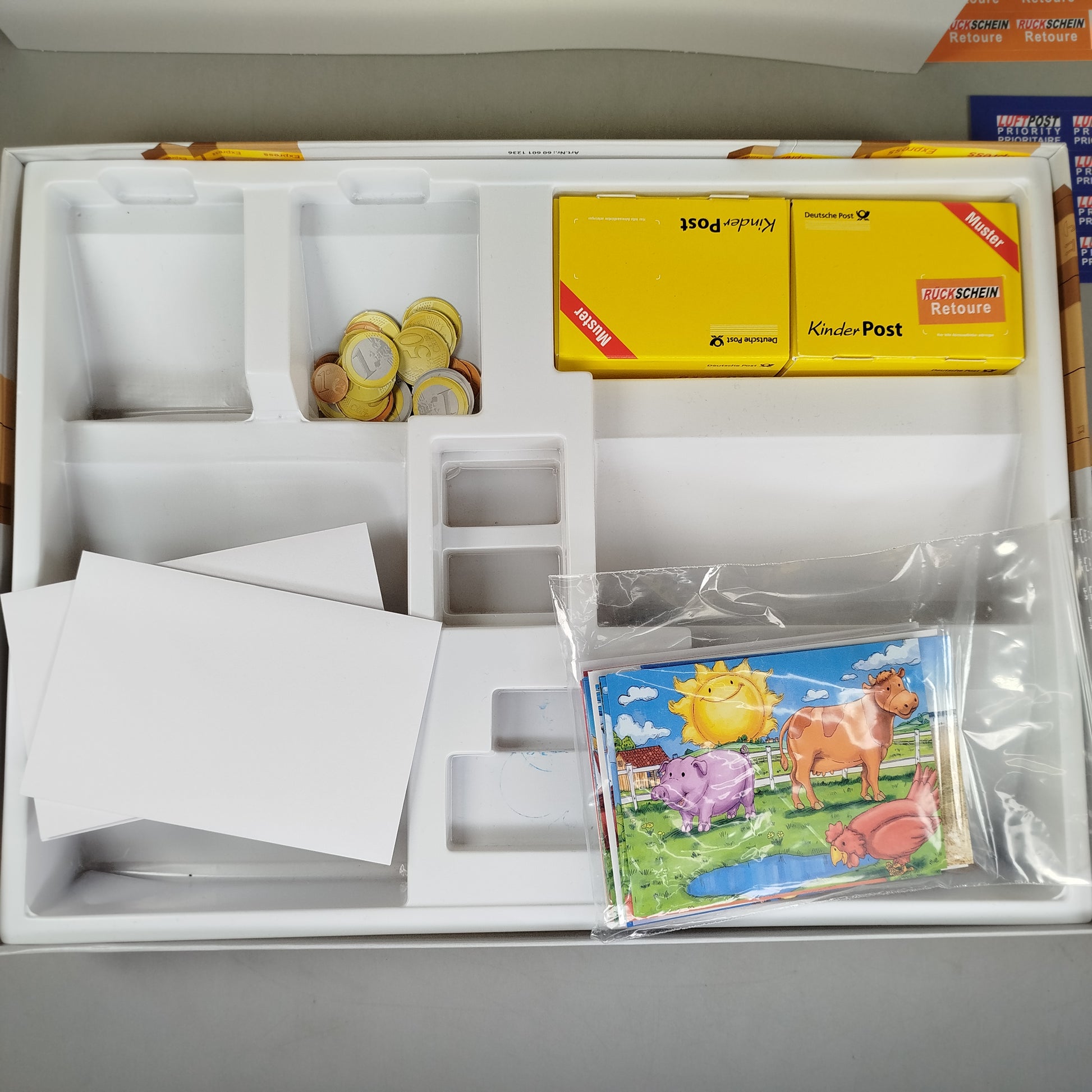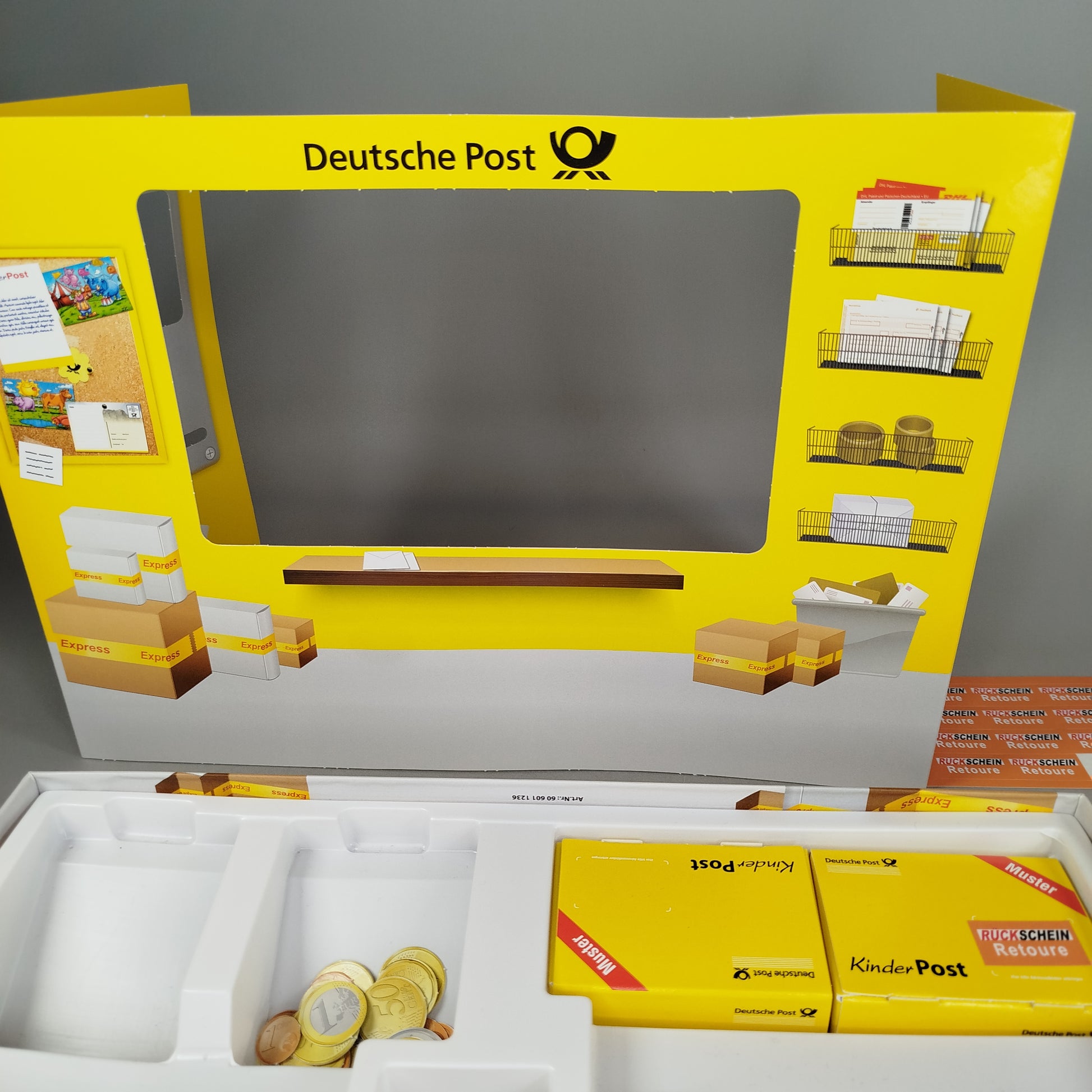Hol dir das Kinderpost-Spiel und bring echtes Postamt-Feeling ins Kinderzimmer! Dieses liebevoll gestaltete Rollenspiel rund um die Deutsche Post lädt Kinder dazu ein, Briefe zu stempeln, Pakete zu verpacken und mit Spielgeld zu bezahlen. Das Spiel eignet sich ideal für fantasievolle Rollenspiele, fördert erstes Rechnen, Lesen und soziale Kompetenzen und schenkt dem Spielzeug durch Weiterverwendung ein nachhaltiges zweites Leben. Empfohlen für Kinder ab etwa 4 Jahren. Hinweis gemäß GPSR: Enthält Kleinteile, nicht geeignet für Kinder unter 3 Jahren – Erstickungsgefahr.