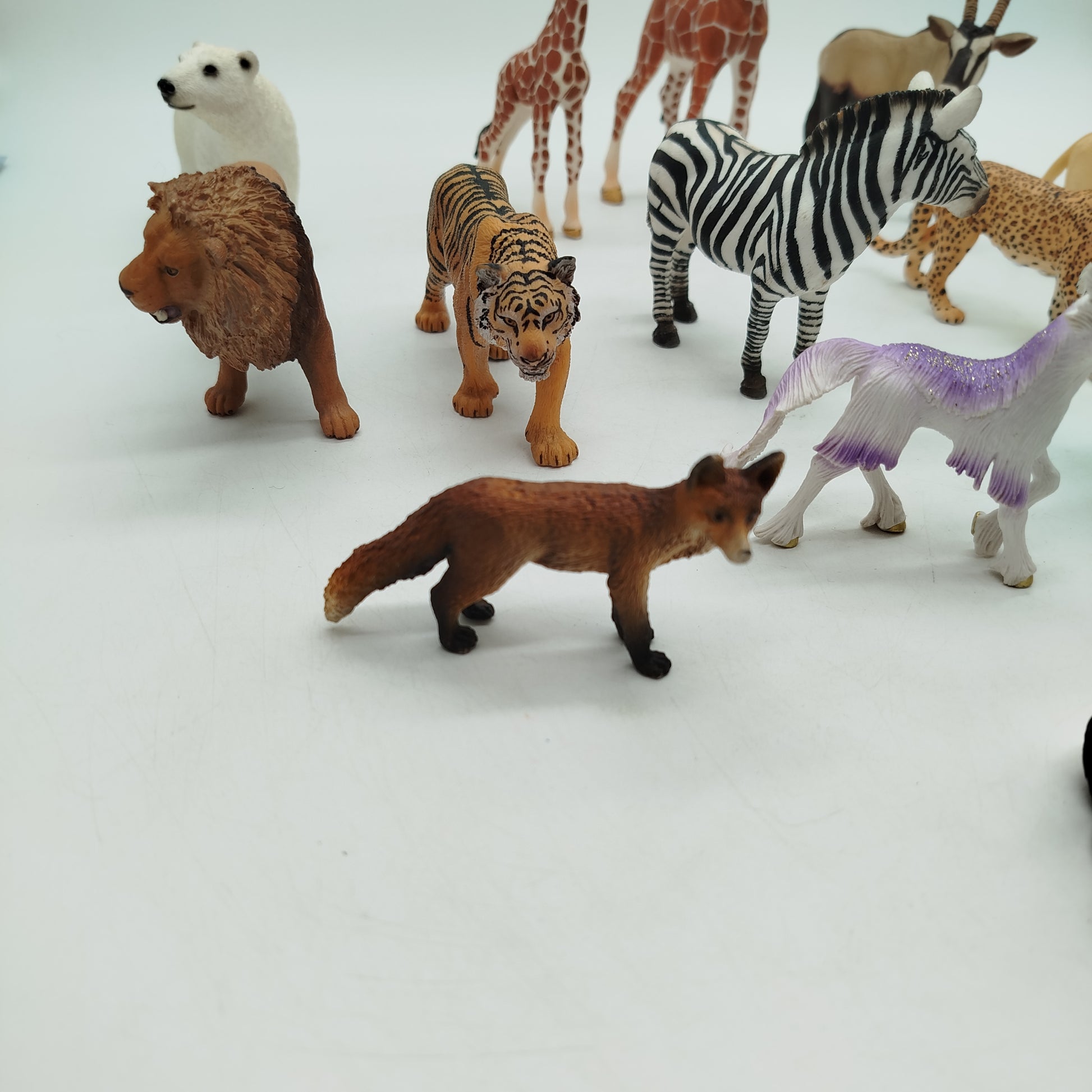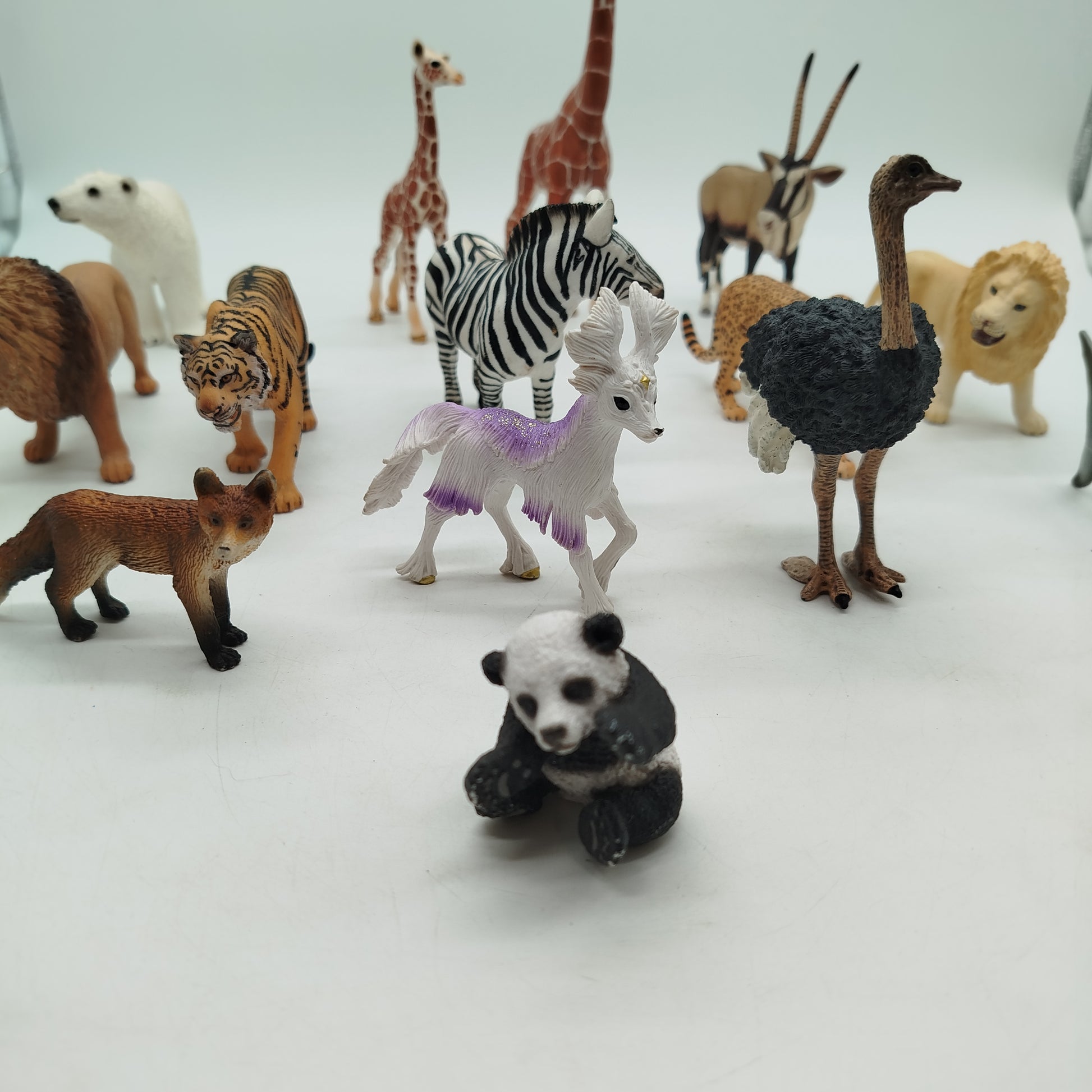 Hol dir das Schleich Tierset mit 14 detailreichen Figuren, darunter Löwe, Tiger, Panda, Giraffen und mehr. Ideal für Tierfreunde und fantasievolles Spielen. Die Figuren bestehen aus robustem Kunststoff und zeigen nur geringe Gebrauchsspuren. Verpackung fehlt, aber alle Tiere sind in sehr gutem Zustand. Gib diesem hochwertigen Spielzeug ein neues Zuhause und fördere kreatives Spielen.