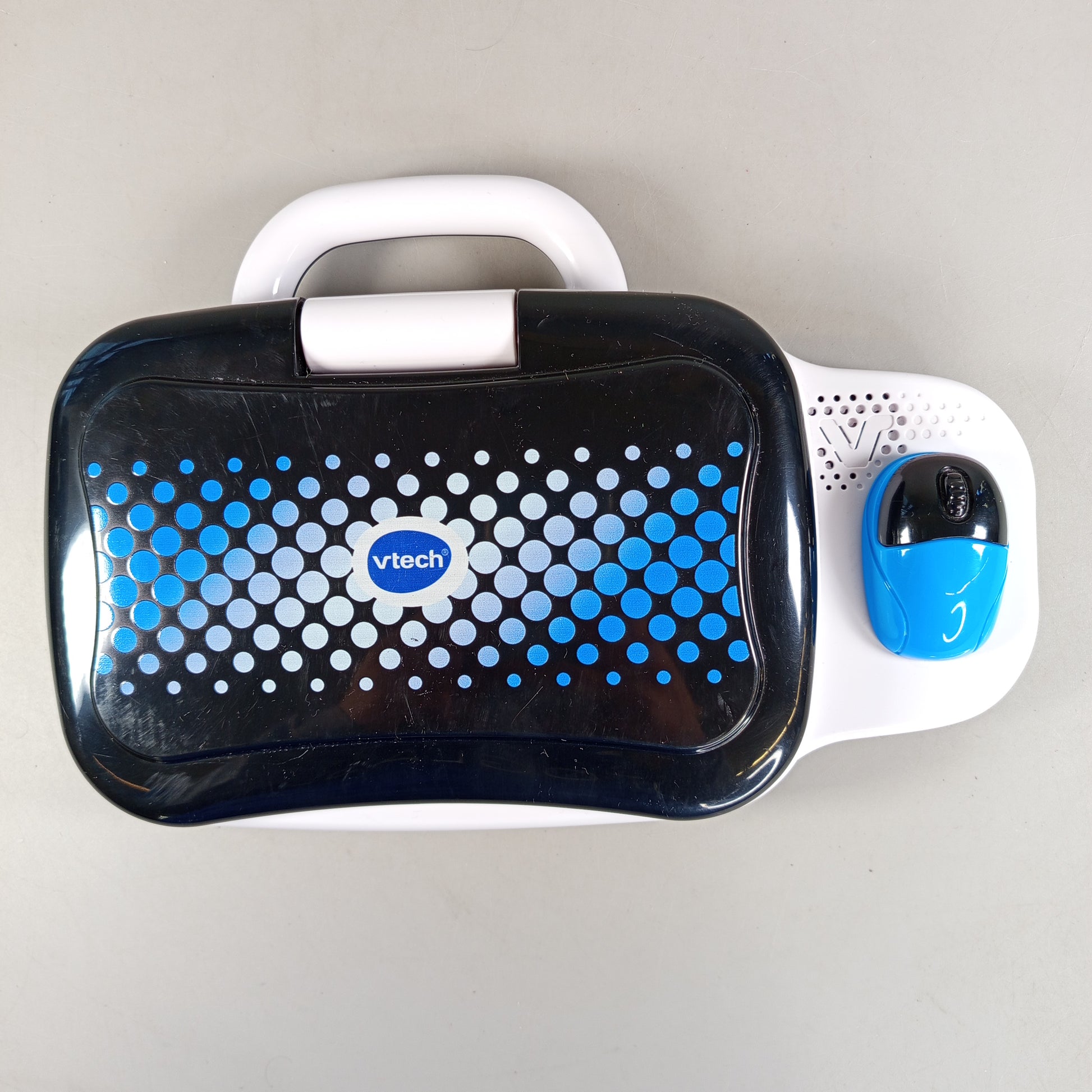 Hol dir das elektronische Lernspielzeug Mein Vorschul-Laptop 2.0, ein kindgerechter Lerncomputer mit monochromem LCD-Bildschirm, Lautsprecher, farbiger Folientastatur mit Buchstaben A–Z und Zahlen 1–0 sowie einer fest angeschlossenen blauen Maus und praktischem Tragegriff; enthalten ist genau der Laptop mit integrierter Maus, der Zustand ist äußerlich nicht eindeutig beurteilbar und sichtbare Beschädigungen sind nicht erkennbar, die Vollständigkeit bezieht sich auf alle sichtbaren Bestandteile, eine Verpackung ist nicht ersichtlich, das Spielzeug ist nicht für Kinder unter 3 Jahren geeignet und enthält Kleinteile, wodurch Erstickungsgefahr bestehen kann, es eignet sich altersgerecht zum spielerischen Entdecken von Buchstaben und Zahlen und bekommt als Second-Hand-Artikel ein sinnvolles zweites Leben.