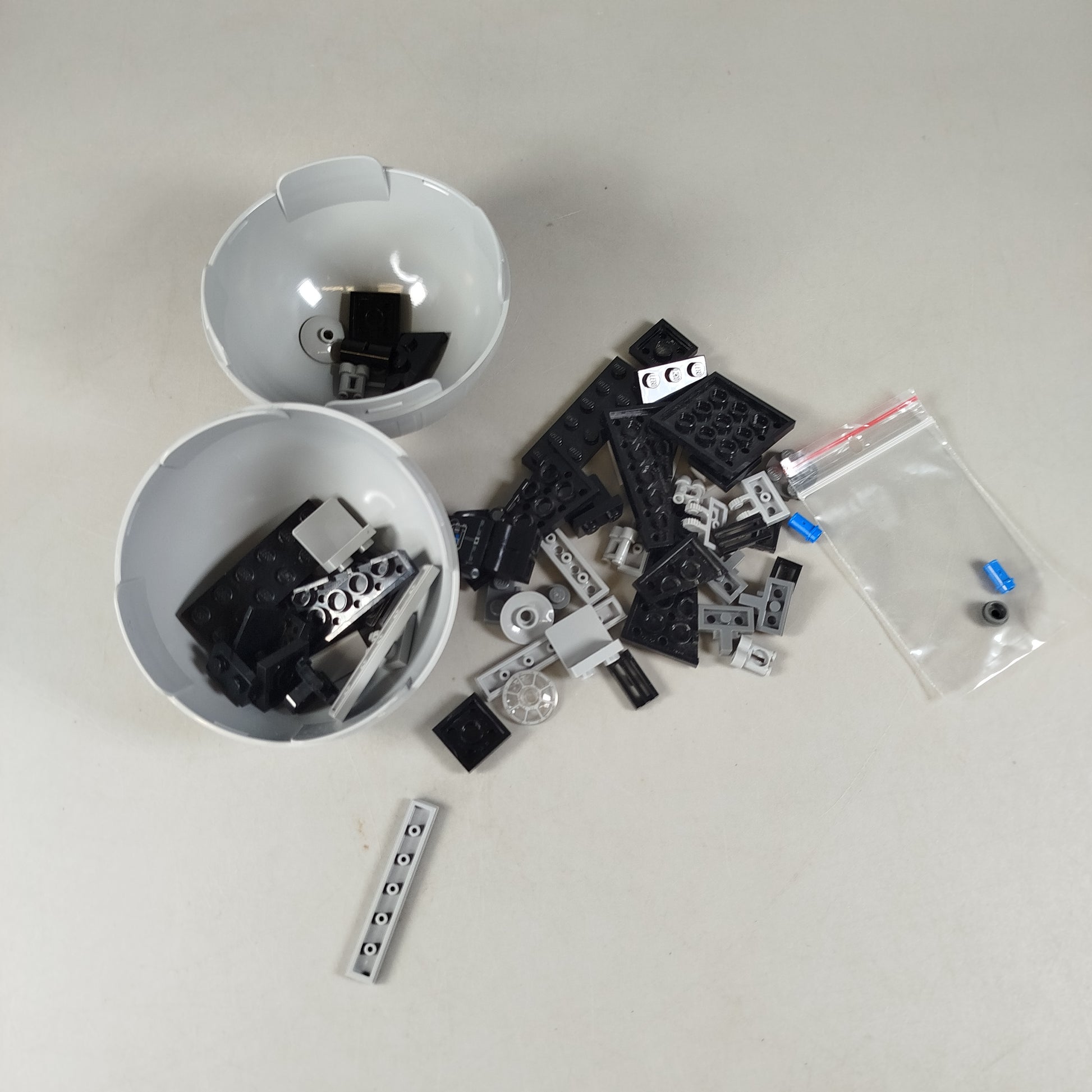 Hol dir das LEGO Star Wars Bauset und bring galaktisches Bauvergnügen ins Kinderzimmer! Dieses Einzelspielzeug besteht aus dem Set 9676 und enthält eine Sammlung zerlegter Bausteine in Schwarz, Grau und transparenten Farben, den grauen zweiteiligen Kugelbehälter, ein original Anleitungheft sowie eine LEGO Minifigur eines TIE-Fighter-Piloten mit Helm und Blaster. Zusätzlich ist ein kleiner Beutel mit weiteren Kleinteilen dabei. Das Set ist ideal für Fans von LEGO Star Wars, die gerne bauen, sammeln oder eigene Szenen nachstellen. Gib diesem Spielzeug ein neues Zuhause und schenke ihm ein zweites Leben. Der Lieferumfang umfasst Bausteine für den TIE Interceptor und den Todesstern, 1 Minifigur, Kugelbehälter und Anleitung. Das Spielzeug befindet sich in einem sehr guten gebrauchten Zustand. Die Vollständigkeit konnte nicht überprüft werden. Verpackung in Form des originalen Kugelbehälters ist vorhanden. Sicherheitshinweis gemäß GPSR: Enthält Kleinteile, nicht geeignet für Kinder unter 3 Jahren, Erstickungsgefahr.