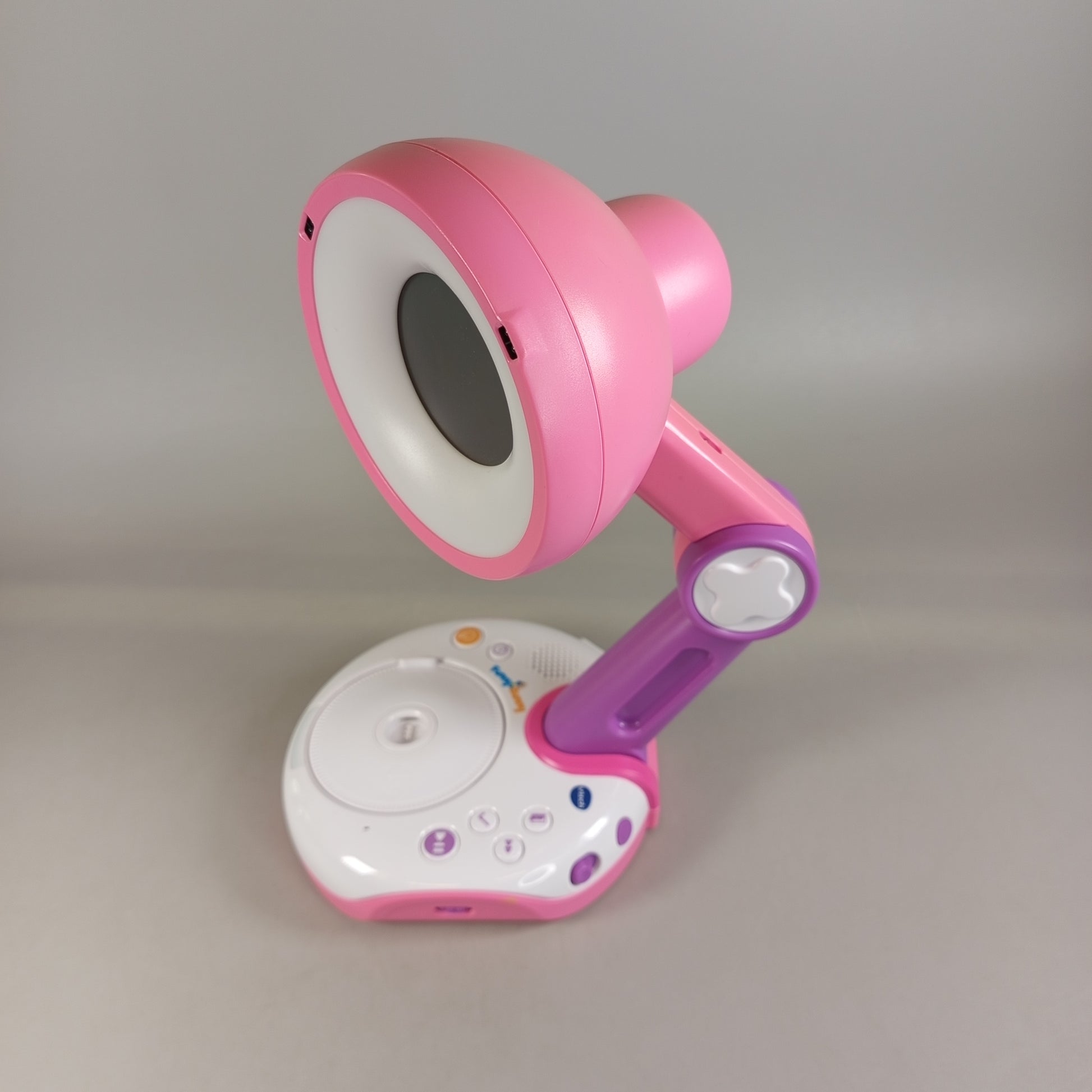 Hol dir das interaktive elektronische Spielzeug Funny Sunny in Lampenform, das mit Licht, Tasten und Audioinhalten zum Spielen, Zuhören und Mitmachen einlädt; enthalten sind eine lampenförmige Haupteinheit in Pink, Lila und Weiß mit Lautsprecher sowie vier austauschbare, farbige Discs mit deutschsprachigen Inhalten wie Spiele, Geschichten und Lieder. Zum Zustand liegen keine näheren Angaben vor, sichtbare Schäden oder fehlende Teile sind nicht beschrieben. Die Vollständigkeit ist anhand der sichtbaren Teile nicht eindeutig beurteilbar, eine Verpackung ist nicht ersichtlich. Als Second-Hand-Spielzeug bekommt der Artikel ein zweites Leben und schont Ressourcen. Achtung: Enthält Kleinteile, Erstickungsgefahr, empfohlen für Kinder im passenden Alter.