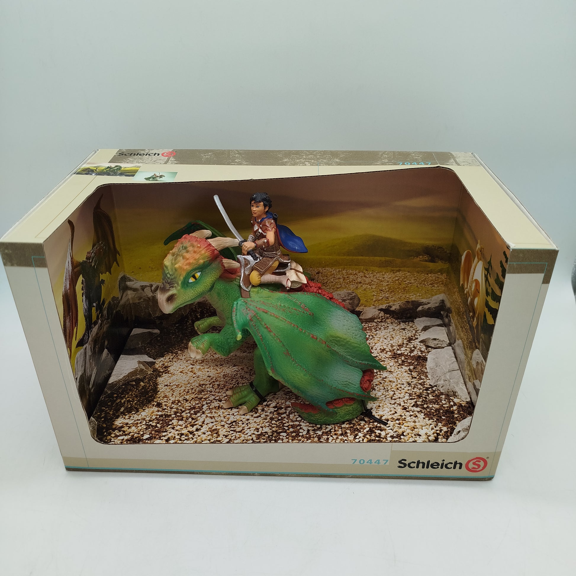 Hol dir den fantasievollen Schleich Drachenreiter Kishay und tauche ein in die magische Bayala-Welt! Dieses Einzelspielzeug besteht aus zwei Figuren: einem grünen Drachen mit Sattel sowie der humanoiden Reiterfigur Kishay, die ein Schwert in der Hand hält. Das Spielzeug ist ideal für fantasievolle Rollenspiele rund um Drachen, Abenteuer und Fabelwesen und eignet sich perfekt zum Sammeln oder Bespielen. Die Figuren kommen in der originalen Schleich-Kartonverpackung und sind schön präsentiert. Gib diesem tollen Spielzeug ein neues Zuhause und schenke ihm ein zweites Leben mit vielen neuen Abenteuern. Der Lieferumfang umfasst genau einen Drachen und eine Reiterfigur. Das Spielzeug befindet sich in einem sehr guten gebrauchten Zustand. Es handelt sich um ein gebrauchtes Spielzeug. Die Vollständigkeit ist gegeben. Sicherheitshinweis gemäß GPSR: Enthält Kleinteile, nicht geeignet für Kinder unter 3 Jahren, Erstickungsgefahr!