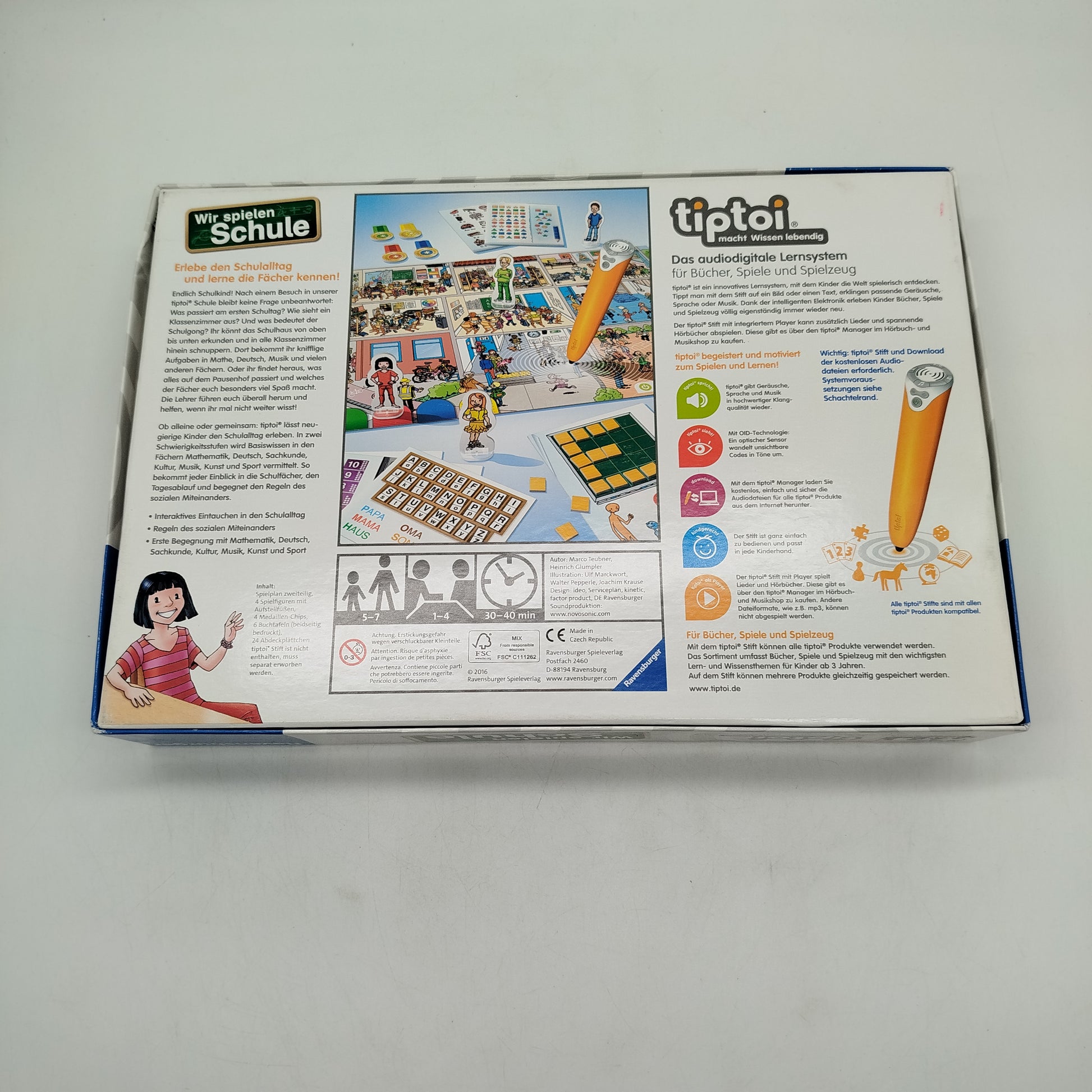 Hol dir das tiptoi Lernspiel Wir spielen Schule von Ravensburger und entdecke spielerisch den Schulalltag. Das interaktive Brettspiel zeigt verschiedene Schulszenen und vermittelt Wissen zu typischen Unterrichtsfächern für 1–4 Spieler mit einer Spieldauer von etwa 30–40 Minuten. Das Spiel funktioniert mit dem tiptoi Stift, der separat benötigt wird. Gib diesem Lernspiel ein zweites Zuhause und unterstütze nachhaltiges Spielen mit Lerneffekt. Empfohlen für Kinder im Grundschulalter.