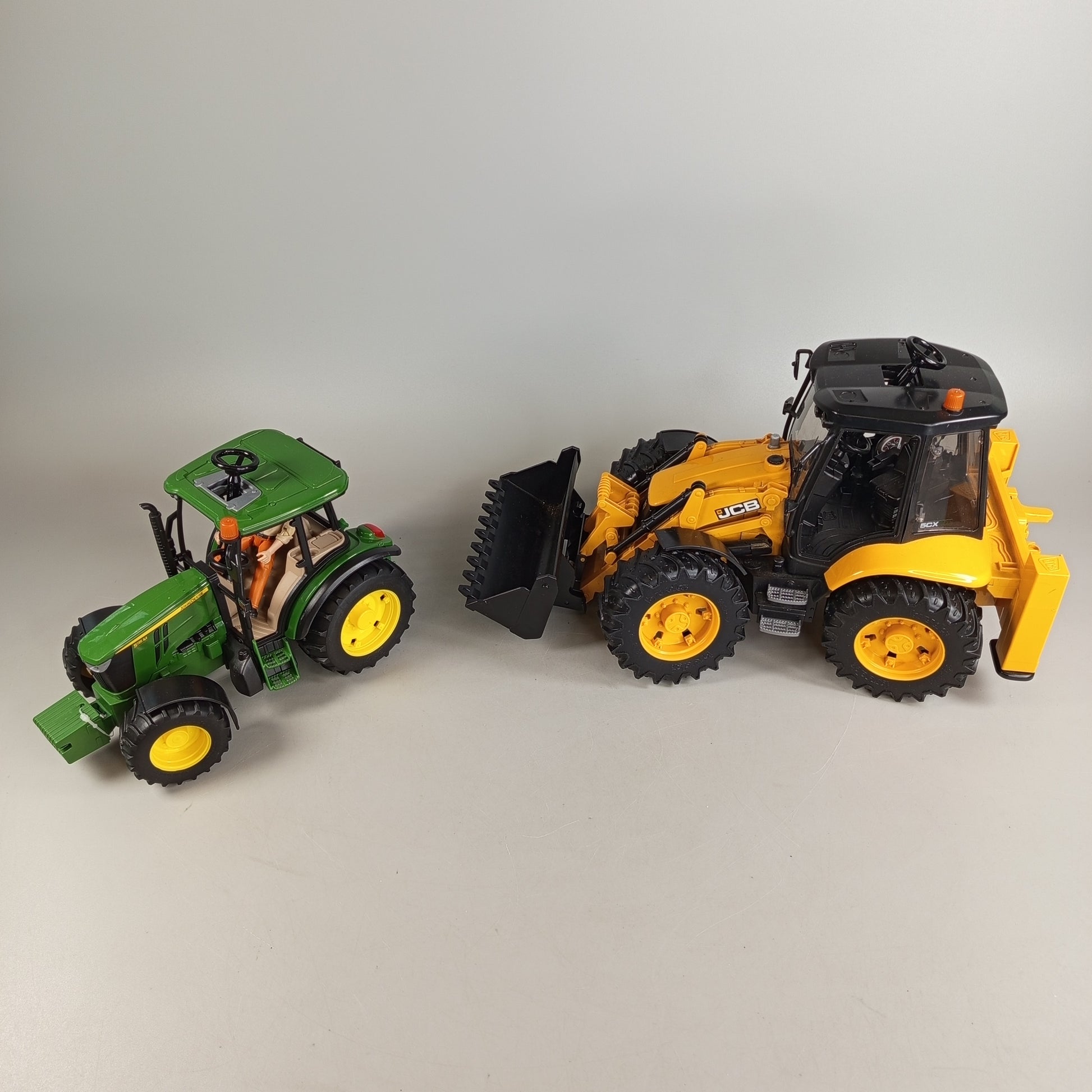Hol dir das Fahrzeug-Set mit einem detailreichen JCB 4CX Baggerlader der Marke Siku und einem John Deere 5115M Traktor mit Fahrerfigur der Marke Bruder Toys. Beide Modelle zeigen realistische Innen- und Außendetails aus robustem Kunststoff. Die Spielzeuge befinden sich in gutem gebrauchten Zustand, die Originalverpackung fehlt. Die Vollständigkeit konnte nicht überprüft werden. Hinweis: Enthält Kleinteile, nicht geeignet für Kinder unter 3 Jahren.