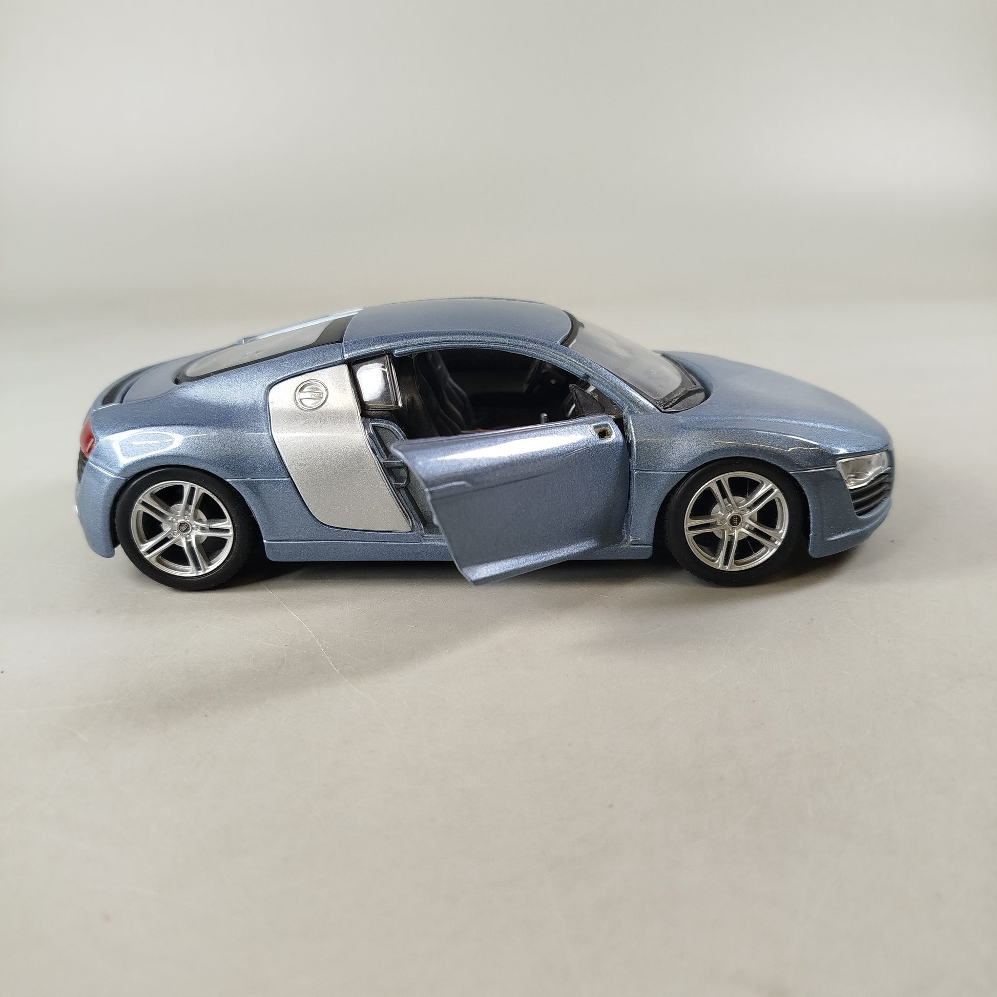 Hol dir das Audi R8 Modellauto und bring echtes Rennsport-Feeling ins Regal oder Kinderzimmer! Das detailreiche Modell zeigt den Audi R8 in hellblau metallic mit silbernem Sideblade, geöffnet darstellbarer Fahrertür und sichtbarem Motor mit V8 FSI Beschriftung. Ideal zum Spielen oder Sammeln und perfekt, um einem Spielzeug ein zweites Leben zu schenken. Enthalten ist ein einzelnes Modellauto. Hinweis gemäß GPSR: Enthält Kleinteile, nicht geeignet für Kinder unter 3 Jahren. Erstickungsgefahr!
