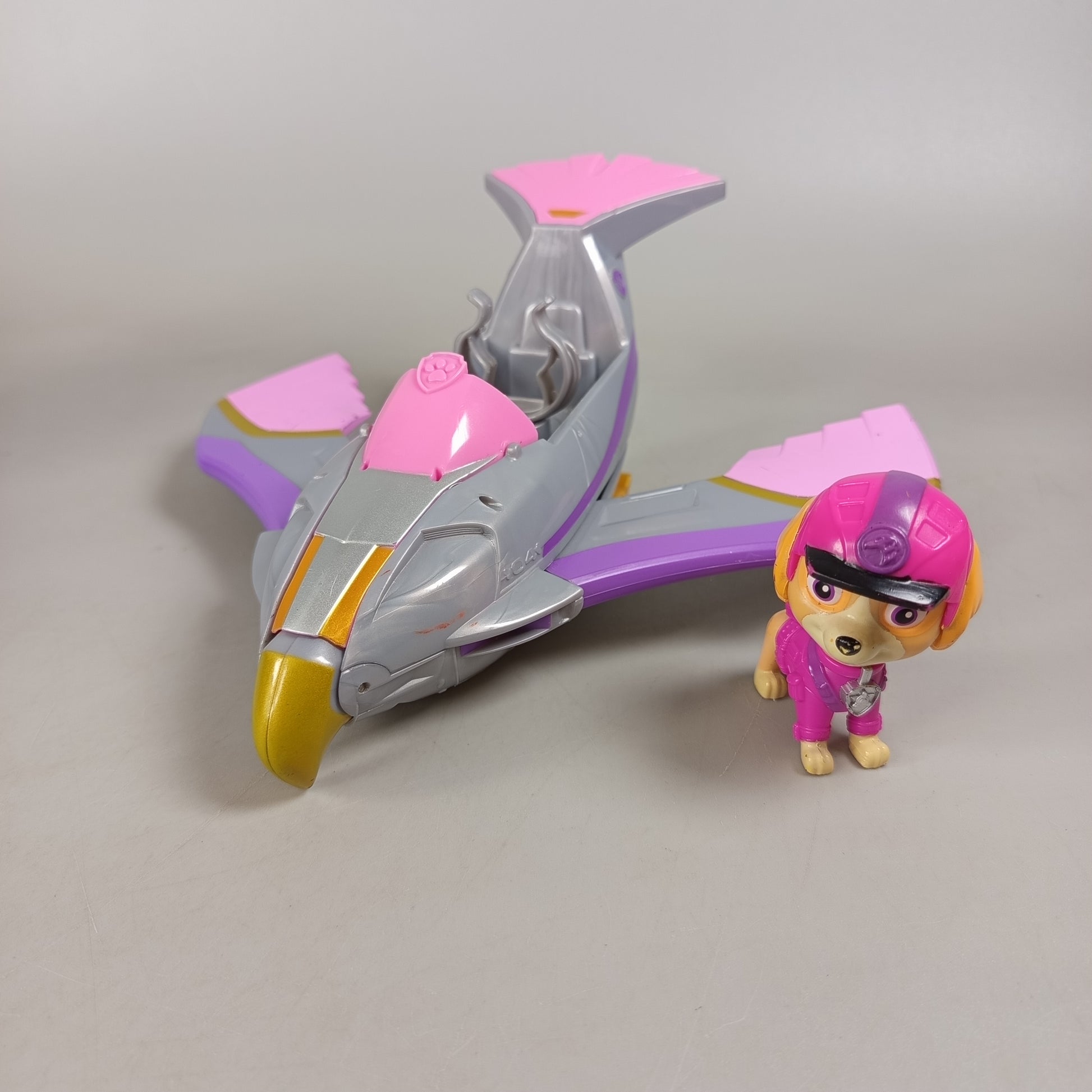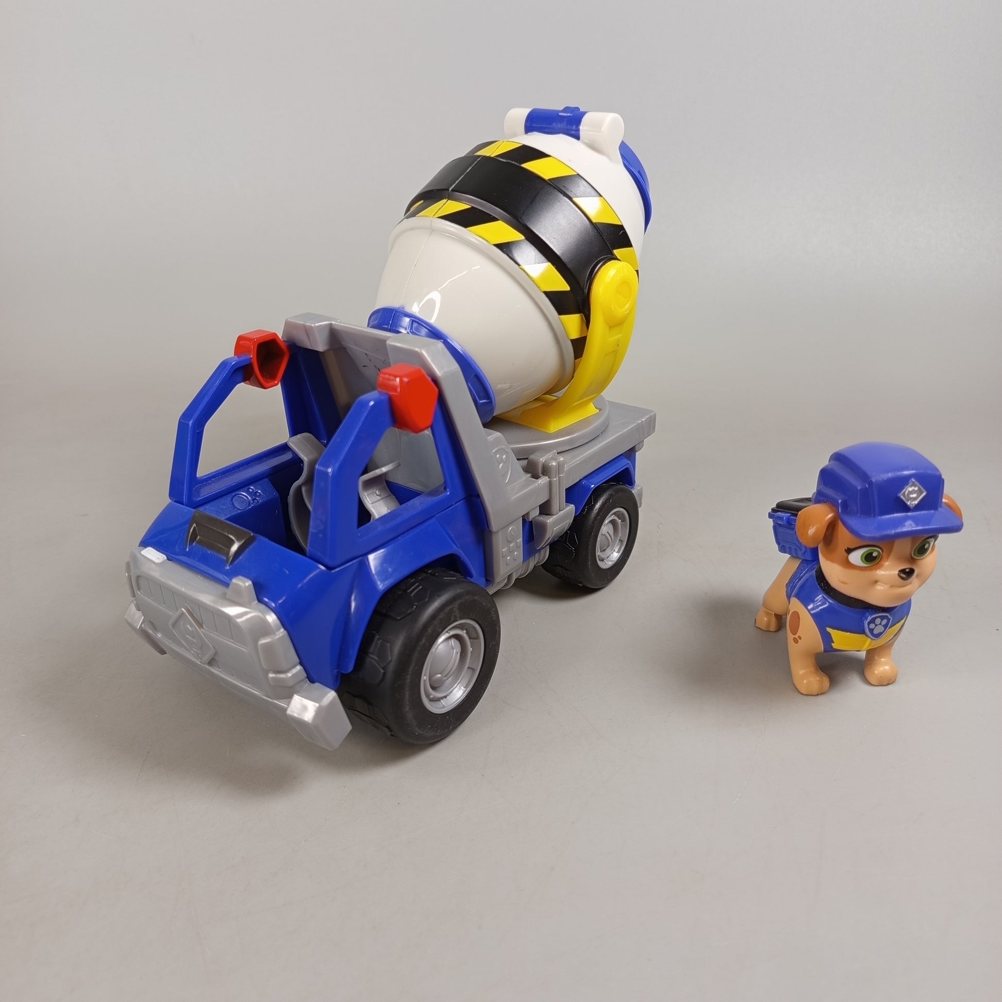 Hol dir das Paw Patrol Fahrzeug-Set von Spin Master mit vier detailreichen Einsatzfahrzeugen und den passenden Hundefiguren. Jedes Fahrzeug trägt das Paw Patrol Abzeichen, unter anderem Rockys Recyclingwagen und ein gelb-schwarzer Betonmischer. Die Figuren bestehen aus robustem Kunststoff und zeigen kleine Gebrauchsspuren. Verpackung fehlt, aber alle Teile sind gut erhalten. Gib diesen Helden ein neues Zuhause und sorge für spannende Rettungseinsätze im Kinderzimmer. Hinweis: Nicht für Kinder unter 3 Jahren geeignet, da Kleinteile verschluckt werden können.