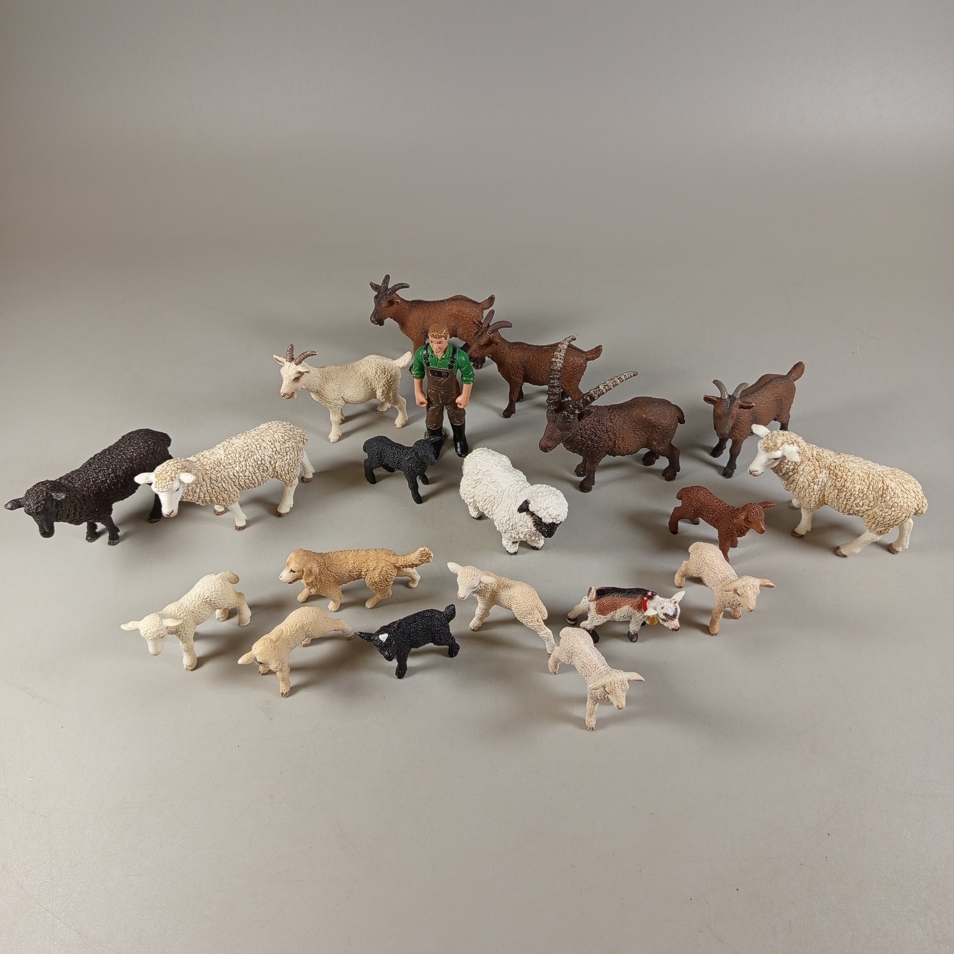 Hol dir das Schleich Tierset und entdecke das Leben auf dem Bauernhof! Dieses Set enthält 20 detailreiche Figuren, darunter Schafe, Lämmer, Ziegen, einen Steinbock, einen Hund, einen Widder und einen Landwirt. Perfekt für fantasievolle Rollenspiele und zum Sammeln. Das Spielzeug befindet sich in einem sehr guten gebrauchten Zustand mit leichten Gebrauchsspuren. Die Vollständigkeit konnte nicht überprüft werden. Sicherheitshinweis: Nicht für Kinder unter 3 Jahren geeignet, da Kleinteile verschluckt werden können.